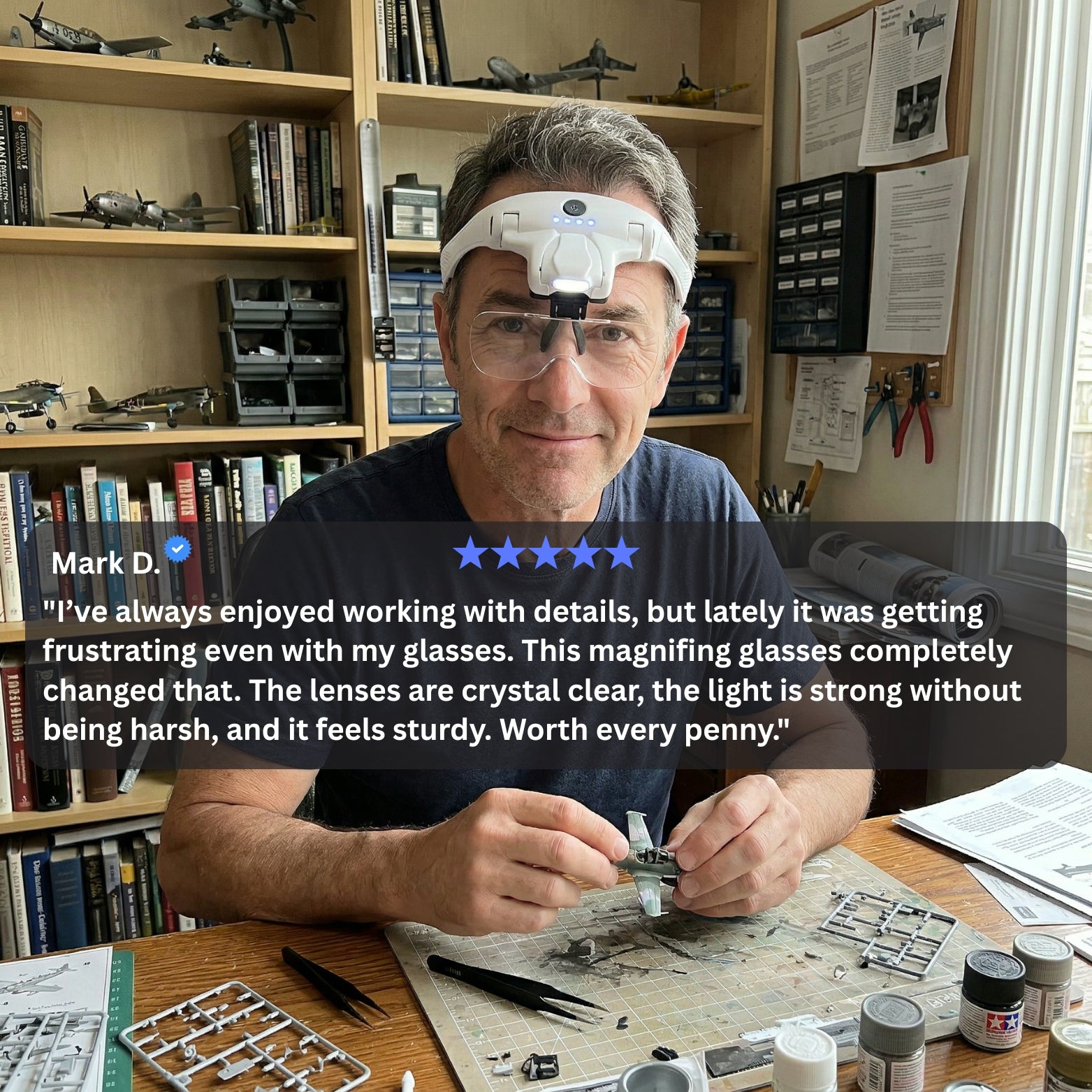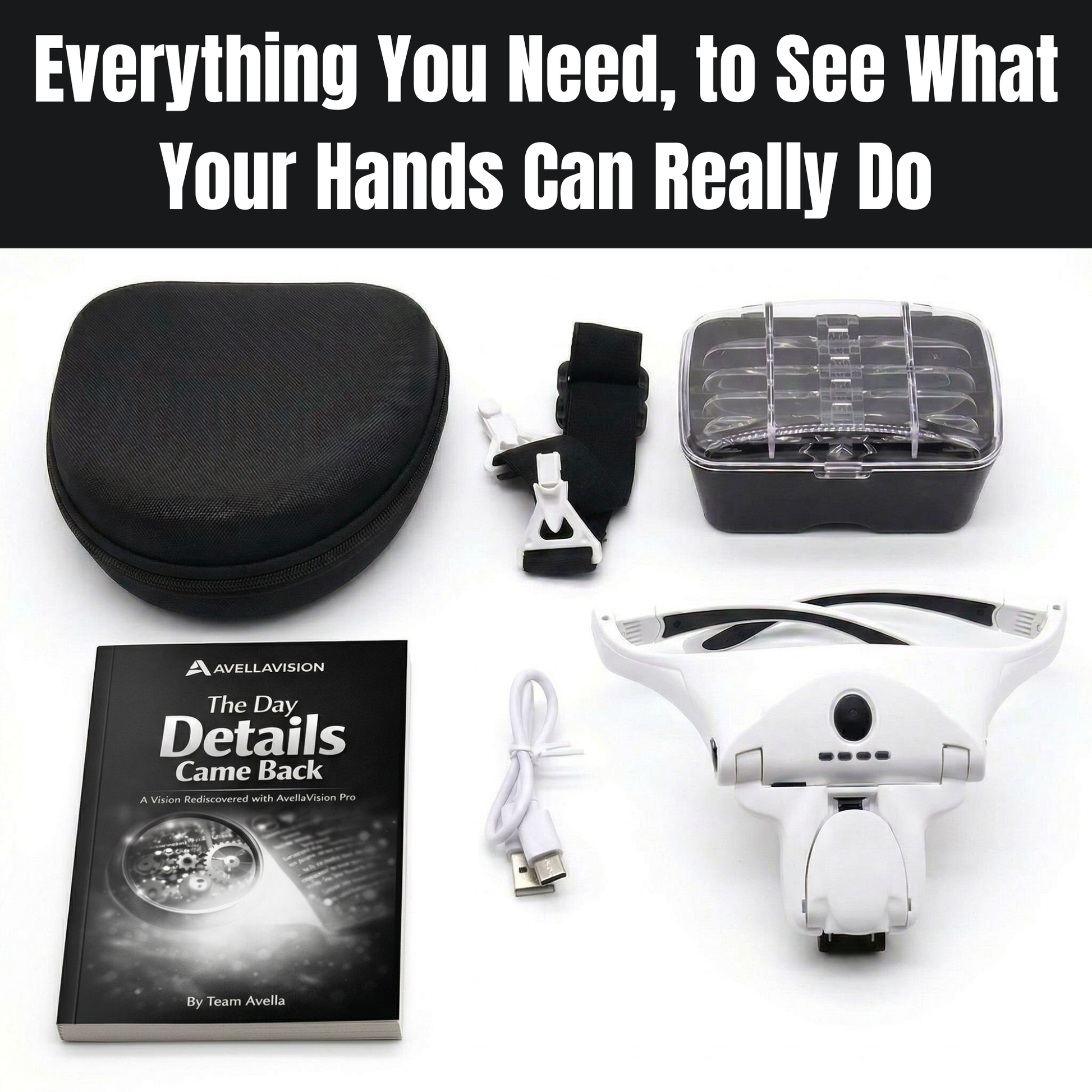 Avella Vision helps you see small details clearly while keeping both hands free — so you can read fine print, work on hobbies, and handle close-up tasks comfortably without squinting, bending forward, or holding bulky magnifiers.