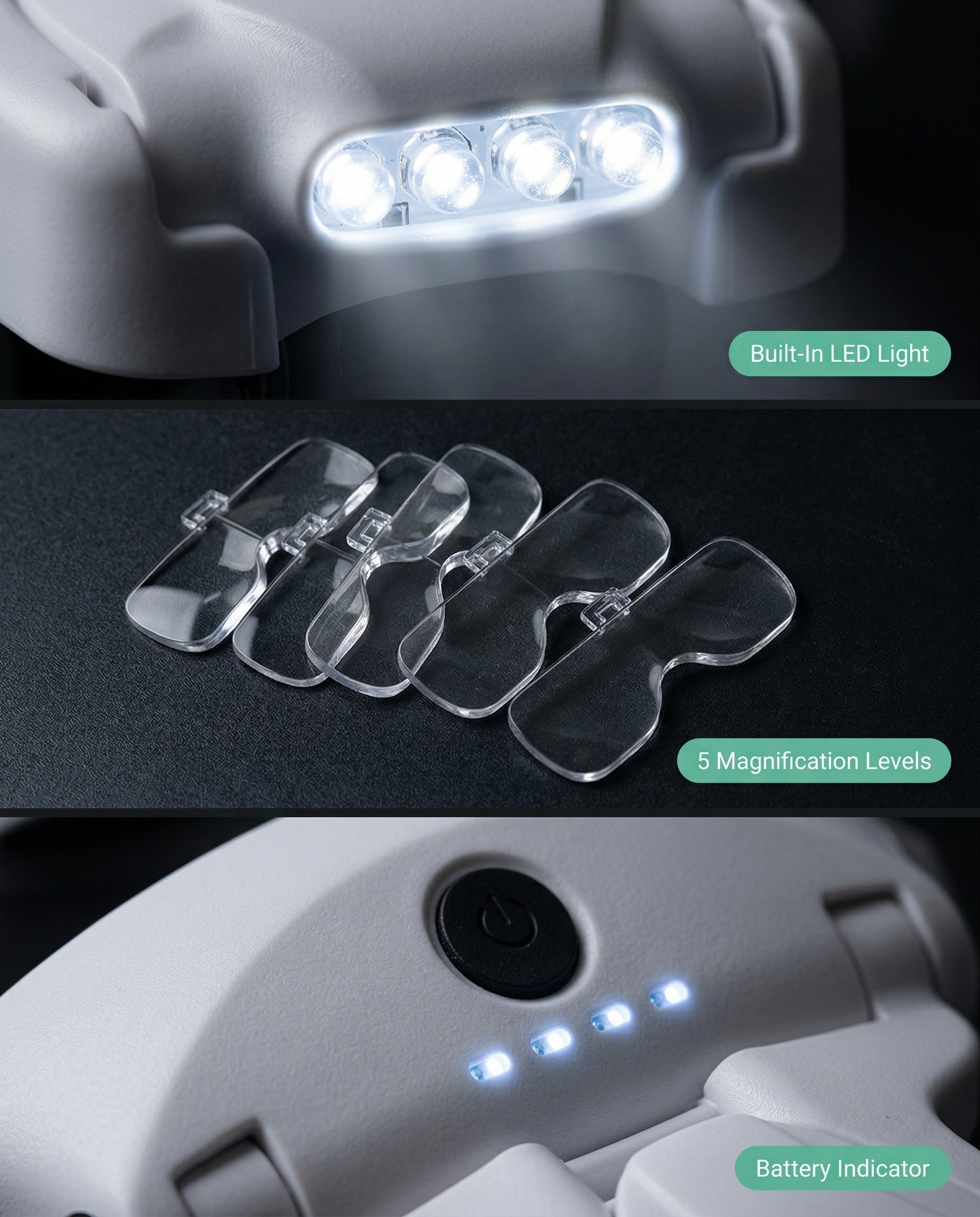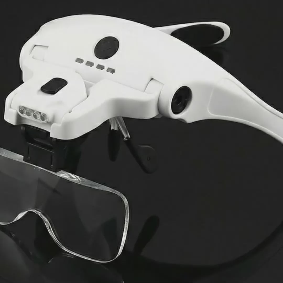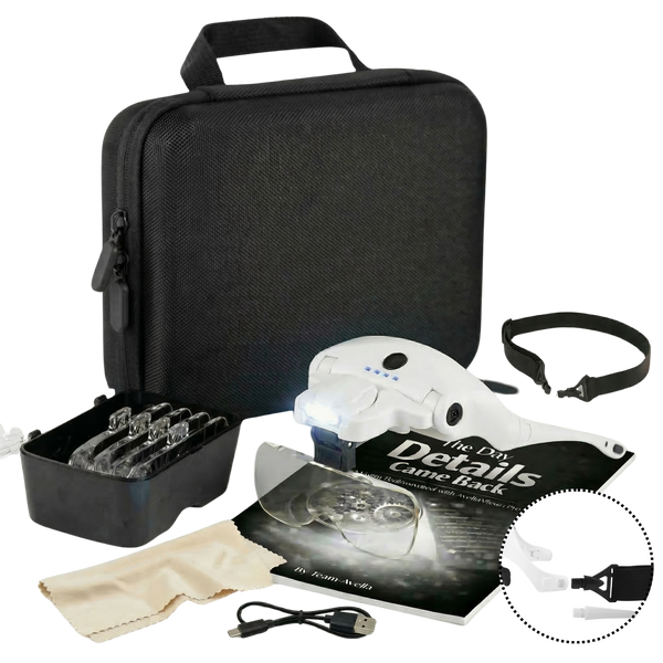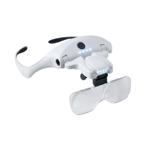 Hands-free magnifier with built-in led lights for any detail work without squinting, leaning or neck pain. USB Rechargable.
